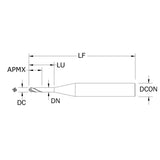 Micro Cortador Vertical, Diam. Cte. 0.0150 pulg, 4 Flautas, Punta Bola