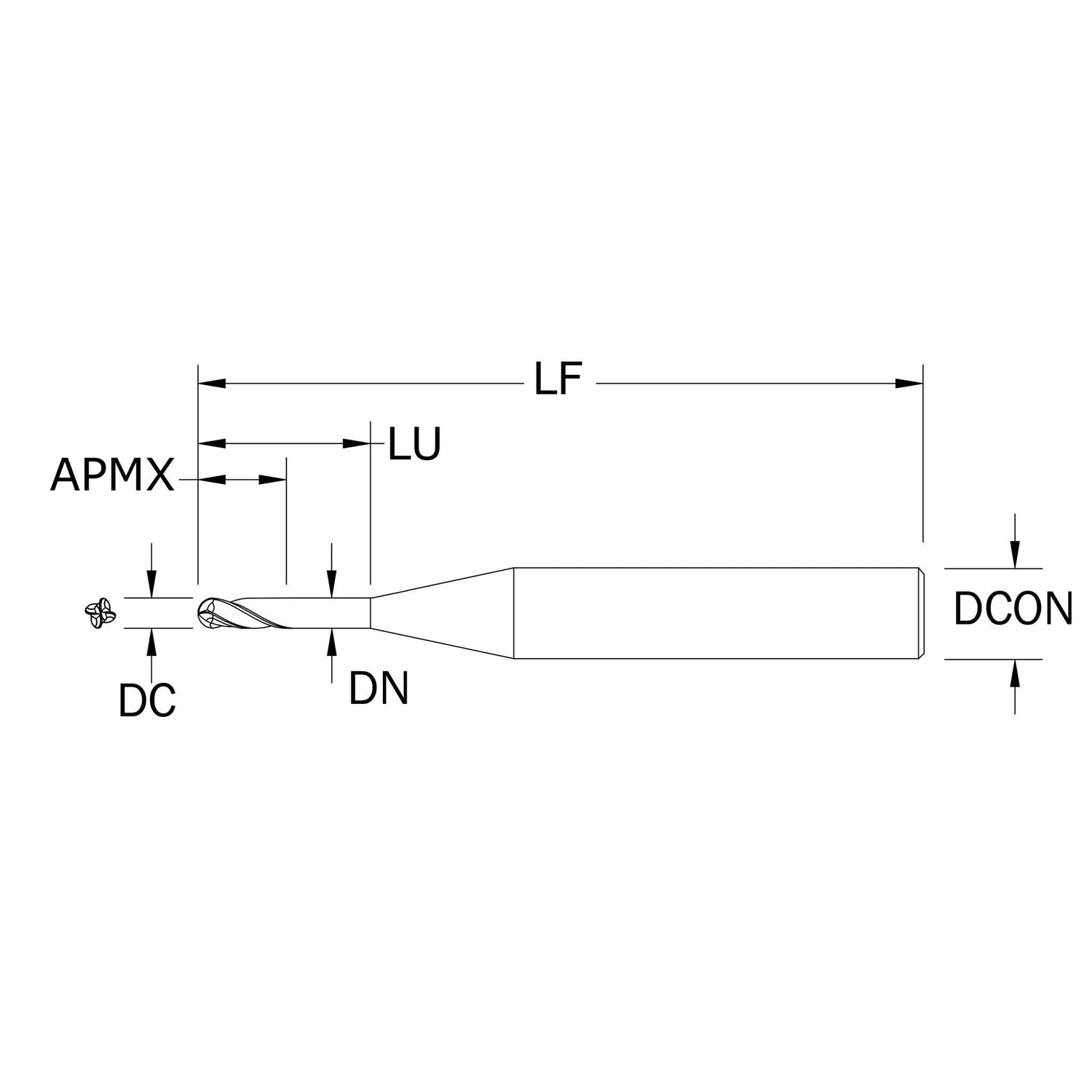 Micro Cortador Vertical, Diam. Cte. 0.0310 pulg, 4 Flautas, Punta Bola