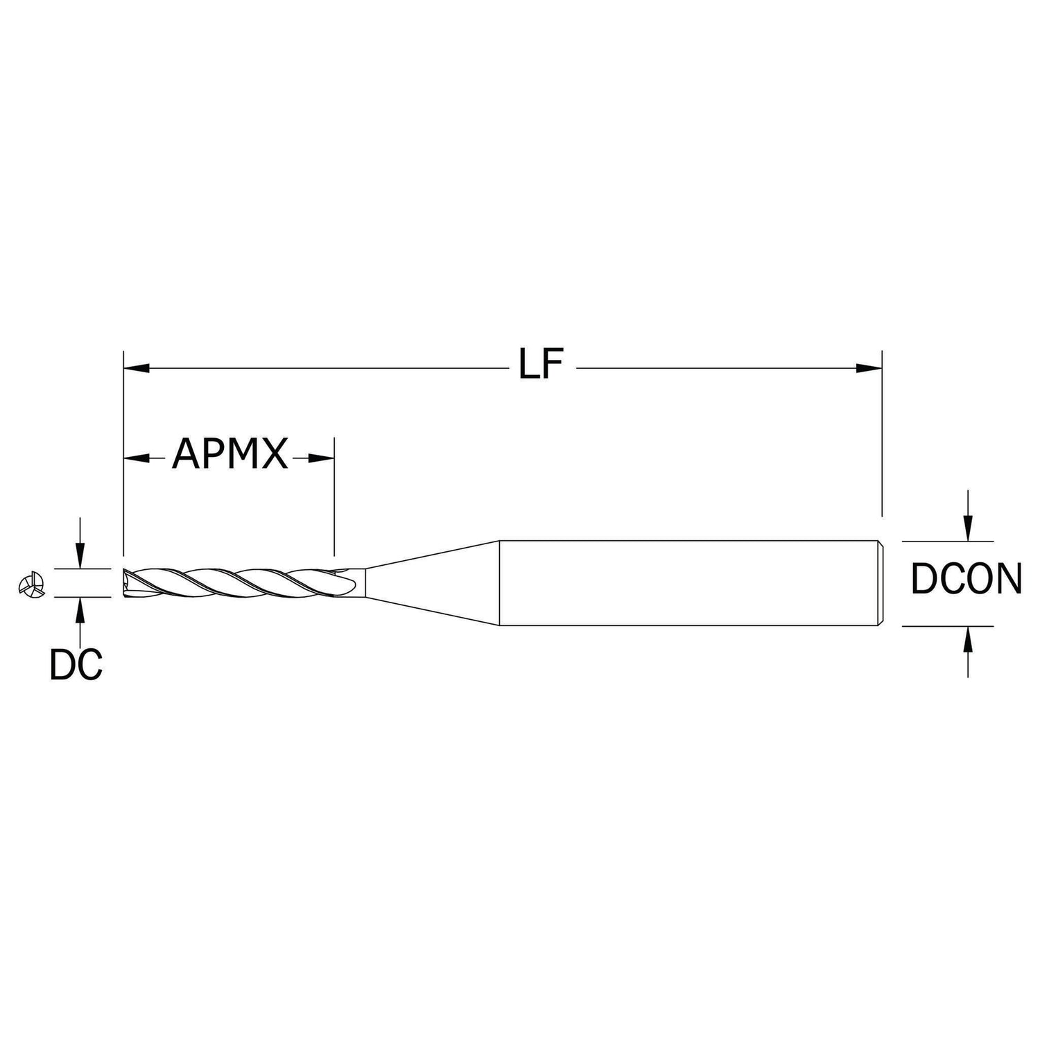 Micro Cortador Vertical, Diam. Cte. 0.0620 pulg, 3 Flautas, Punta Plana
