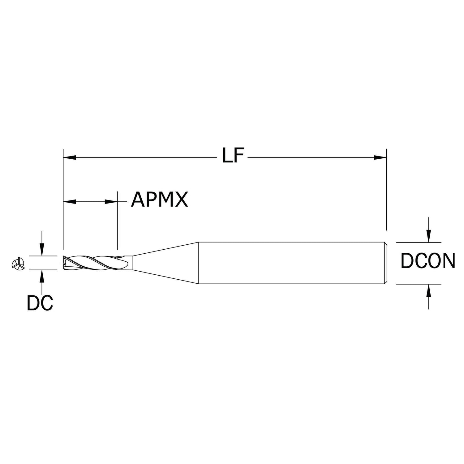 Micro Cortador Vertical, Diam. Cte. 0.0900 pulg, 3 Flautas, Punta Plana