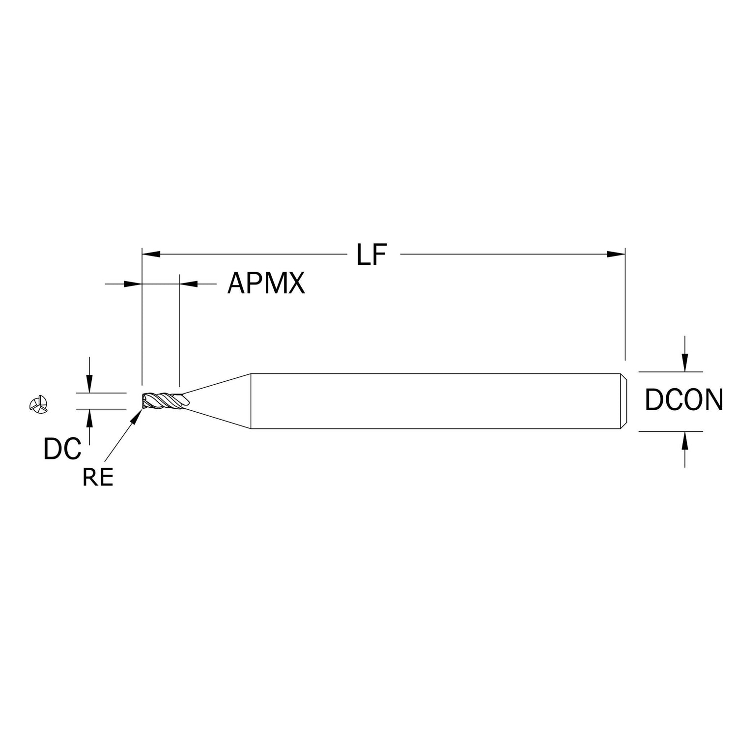 Micro Cortador Vertical, Diam. Cte. 1 mm, 3 Flautas, Punta Plana