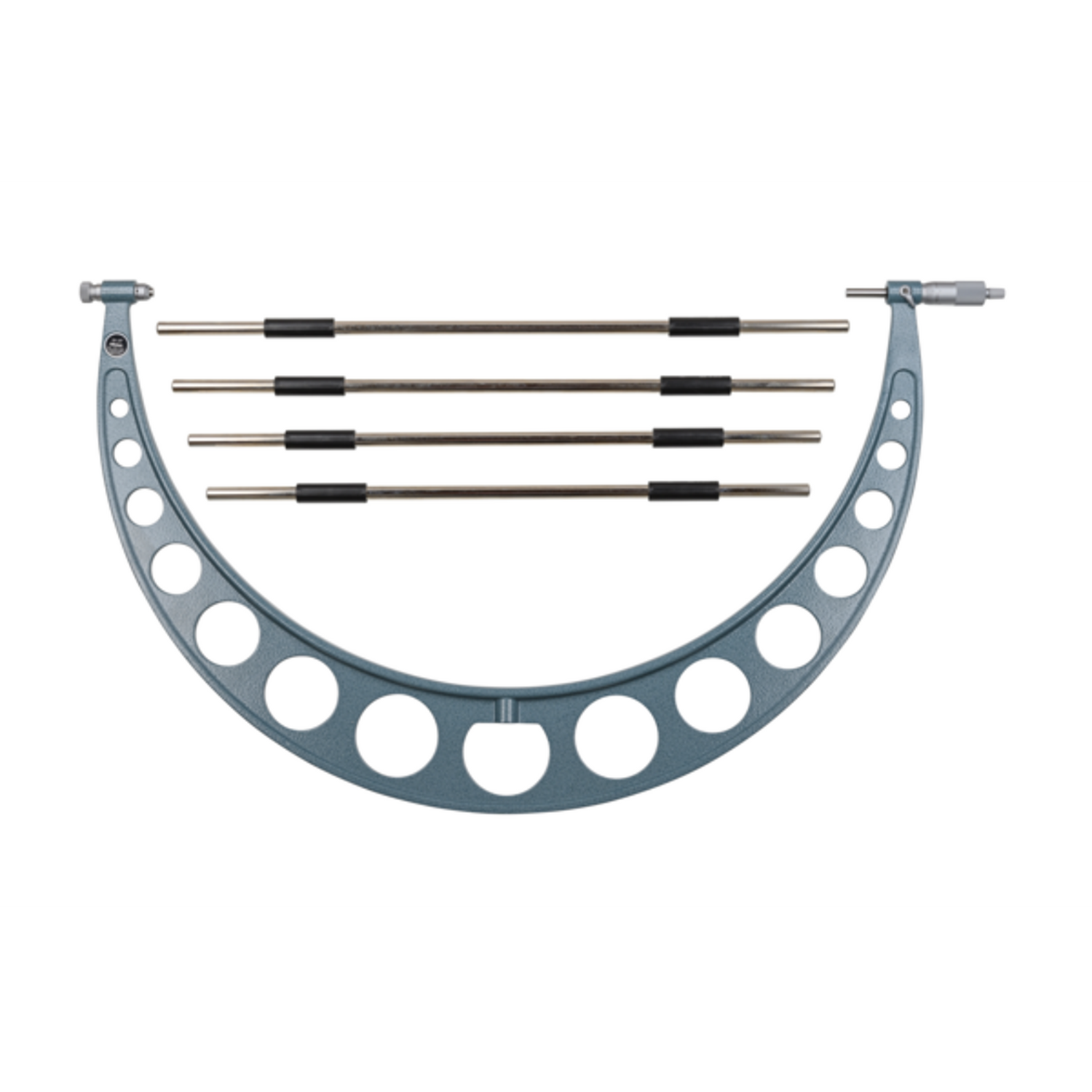 Un micrómetro no digital Mitutoyo provisto de topes fácilmenteintercambiables para permitir un amplio intervalo de medición desde un solo instrumento. Un Trinquete garantiza una medición repetible.