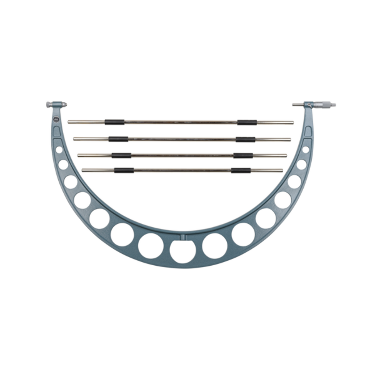 Un micrómetro no digital Mitutoyo provisto de topes fácilmenteintercambiables para permitir un amplio intervalo de medición desde un solo instrumento. Un Trinquete garantiza una medición repetible.