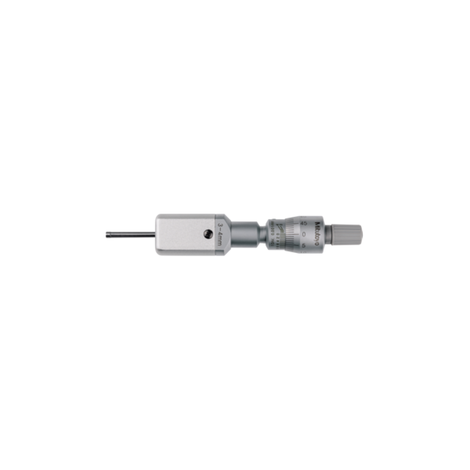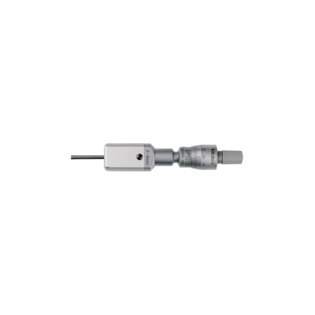 Un micrómetro de agujeros Mitutoyo de 2 puntass no digital adecuado para medir el diámetro de agujeros pequeños. Caras de contacto de acero endurecido. El tope de trinquete garantiza una medición repetible. El Anillo de fijación de acero (opcional) está disponible para un ajuste exacto antes de la medición