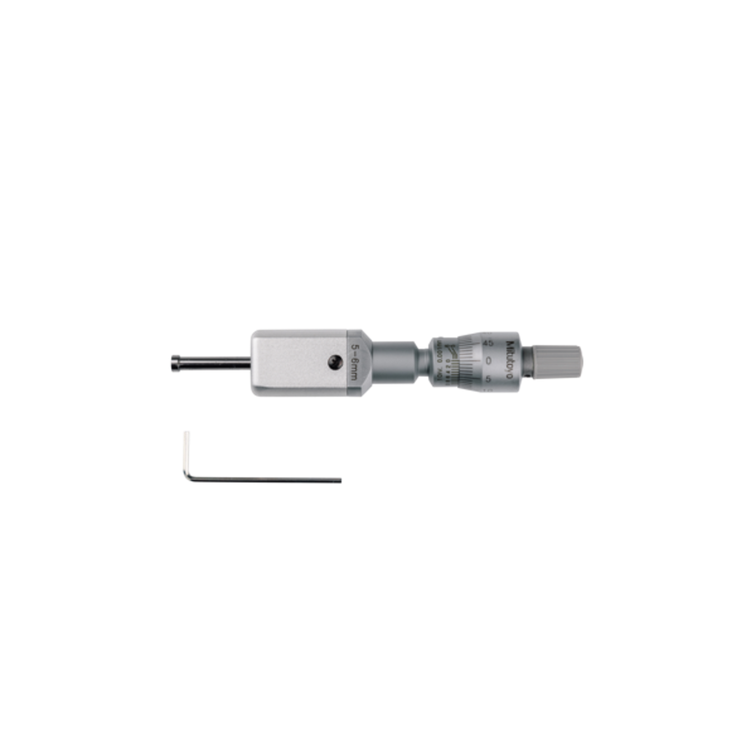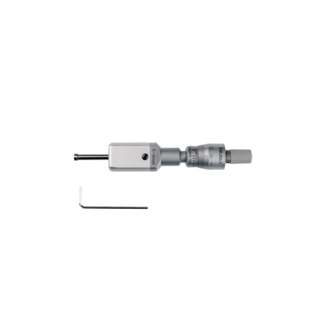 Un micrómetro de agujeros Mitutoyo de 2 puntass no digital adecuado para medir el diámetro de agujeros pequeños. Caras de contacto de acero endurecido. El tope de trinquete garantiza una medición repetible. El Anillo de fijación de acero (opcional) está disponible para un ajuste exacto antes de la medición