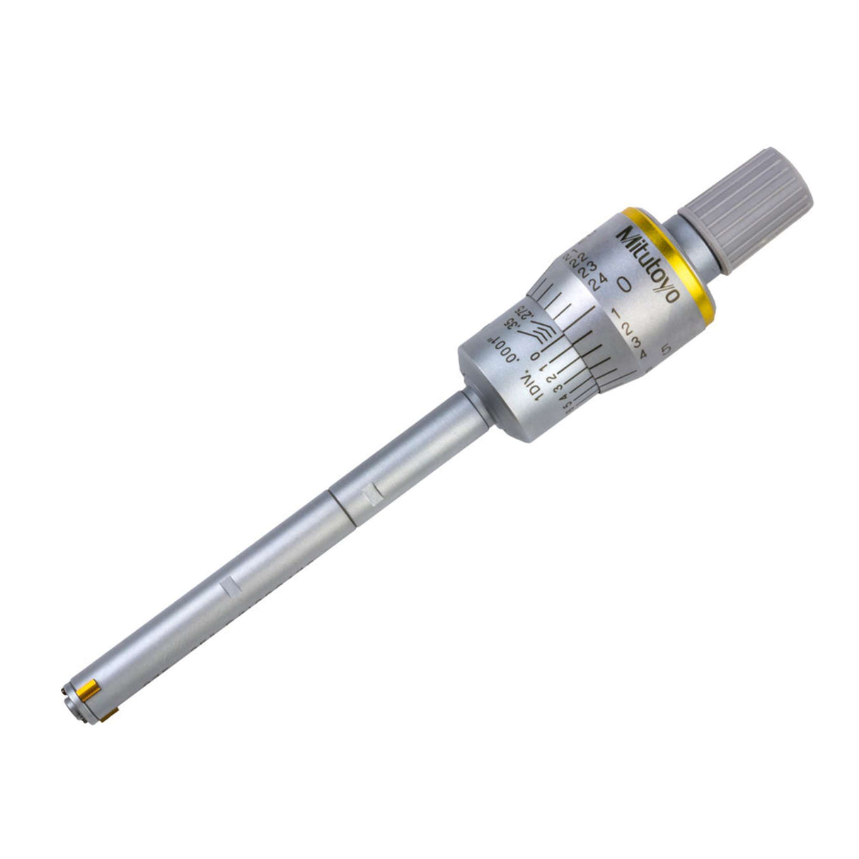 Micrómetros internos de tres y dos puntas le ofrecen los siguientes beneficios: Pernos de medición recubiertos de titanio le brindan una excelente durabilidad y resistencia al impacto (tipo de 3 puntos). El micrómetro de tres puntos permite una medición estable mediante el centrado automático. sin anillo de fijado o extensiones.