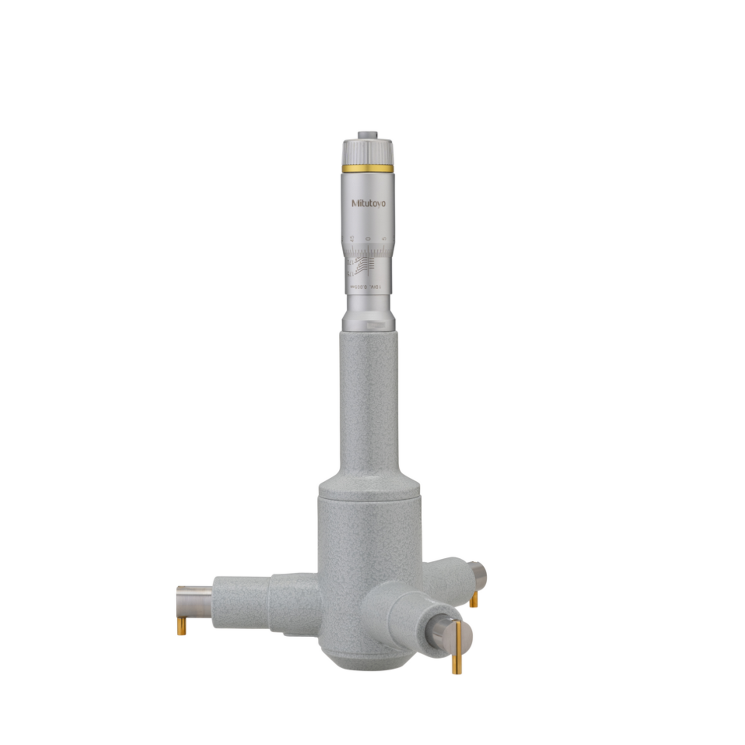 Micrómetros internos de tres y dos puntas le ofrecen los siguientes beneficios: Pernos de medición recubiertos de titanio le brindan una excelente durabilidad y resistencia al impacto (tipo de 3 puntos). El micrómetro de tres puntos permite una medición estable mediante el centrado automático. sin anillo de fijado o extensiones.