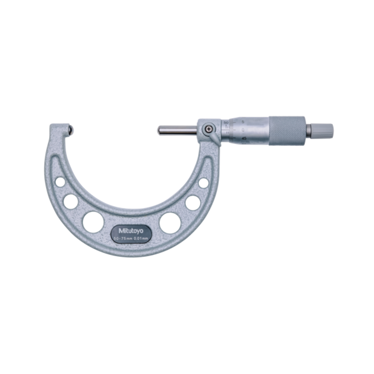 Un micrómetro de tubos no digital Mitutoyo equipado con un tope esférico para realizar mediciones del espesor de pared en tubos y tuberías. Un tope de Trinquete garantiza una medición repetible.