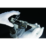 Este micrómetro de cuchilla Digimatic está diseñado para ayudarle a medir características difíciles de alcanzar. Ofrece los siguientes beneficios: Tope y husillo en forma de hoja para medir el diámetro de ranura de ejes, chaveteros y otras características difíciles de alcanzar Husillo no giratorio
