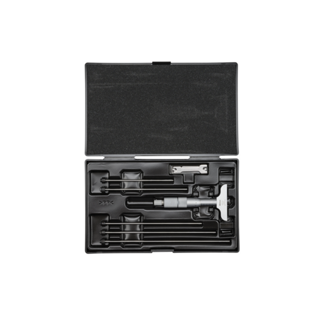 Micrómetro para profundidad Mitutoyo usando varillas de medición intercambiables para cubrir un amplio intervalo de medición. La base de 60 mm está hecha de acero para herramientas, Endurecido y rectificado con una superficie de referencia micro-lapeada.