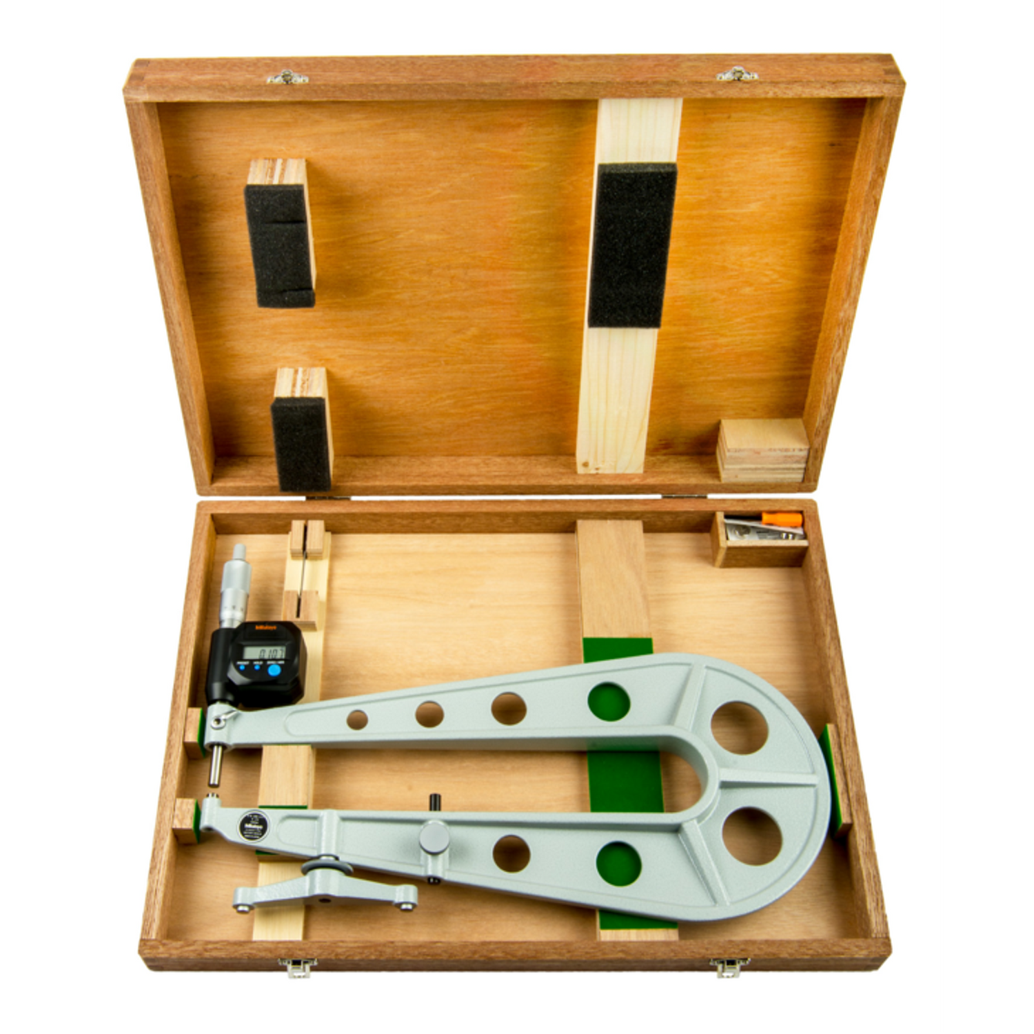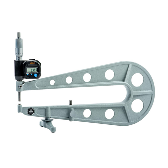 Un micrómetro digital resistente al agua Mitutoyo adecuado para su uso en presencia de refrigerante o aceite de corte. El marco extraprofundo (305mm / 12 pulg) permite medir el espesor de la lámina de metal más lejos del borde de una lámina de lo que es posible con un micrómetro de marco profundo estándar. Un trinquete garantiza una medición repetible Salida de datos Digimatic.