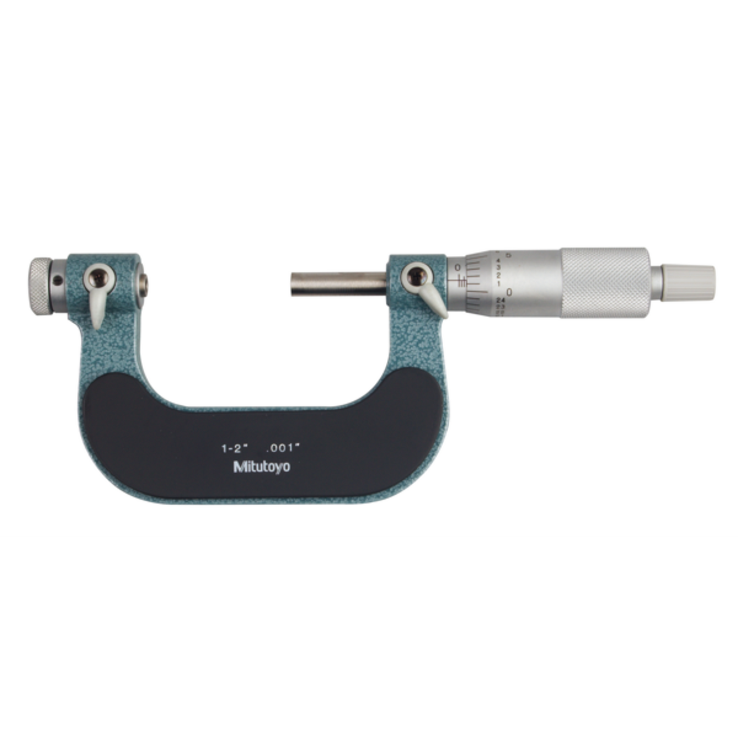 Un micrómetro no digital Mitutoyo diseñado para montar topes/puntas de husillo fácilmenteintercambiables para medir una amplia gama de roscas de tornillos. El marco altamente estable incorpora una cubierta térmica para preservar la exactitud durante sesiones de medición prolongadas. Un Trinquete garantiza una medición repetible.