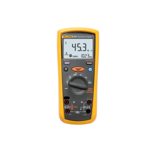 El multímetro de aislamiento Fluke 1577 combina un medidor manual digital de aislamiento con un multímetro digital de aislamiento con un completo multímetro digital de verdadero valor eficaz en un único dispositivo portátil compacto que proporciona la máxima versatilidad para la solución de problemas y el mantenimiento preventivo. El multímetro de aislamiento Fluke 1577 es el complemento perfecto para trabajar con motores, generadores, cables o conmutadores, y cuentan con la rentable ventaja del precio al adquirirlos en conjunto y no por separado.
