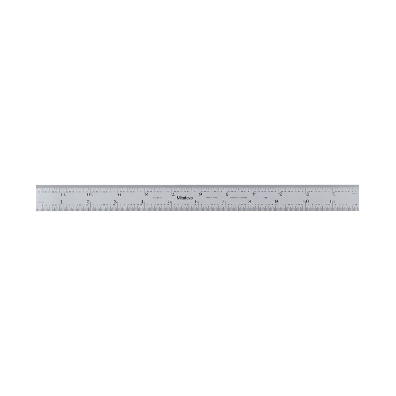Regla de acero inoxidable Mitutoyo, Endurecida y templada. Graduaciones claras en acabado cromado satinado.