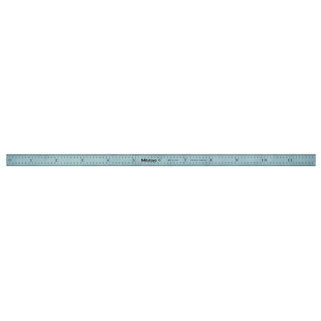 Regla de acero inoxidable Mitutoyo, Endurecida y templada. Graduaciones claras en acabado cromado satinado.
