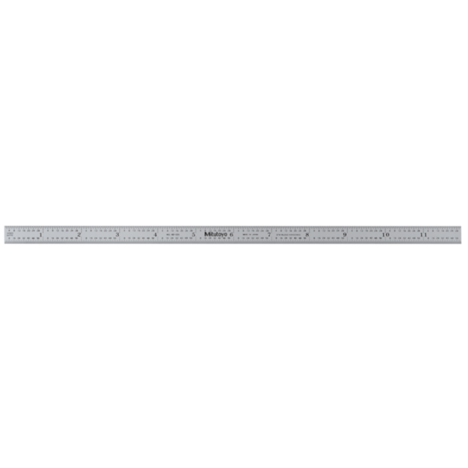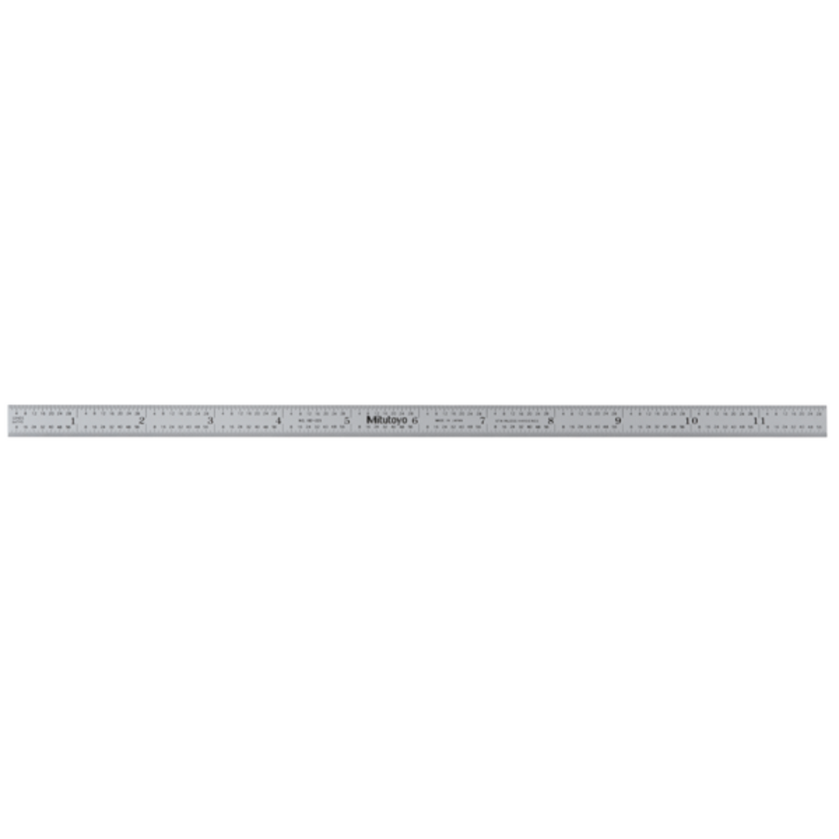 Regla de acero inoxidable Mitutoyo, Endurecida y templada. Graduaciones claras en acabado cromado satinado.